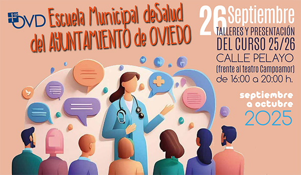 El próximo jueves 26 de septiembre, la Escuela Municipal de Salud del Ayuntamiento de Oviedo abrirá oficialmente su programación para el curso 2025/2026 con un gran evento de presentación que reunirá a ciudadanía, profesionales sanitarios y representantes de los colegios profesionales de Médicos, Enfermeras y Fisioterapia del Principado de Asturias.