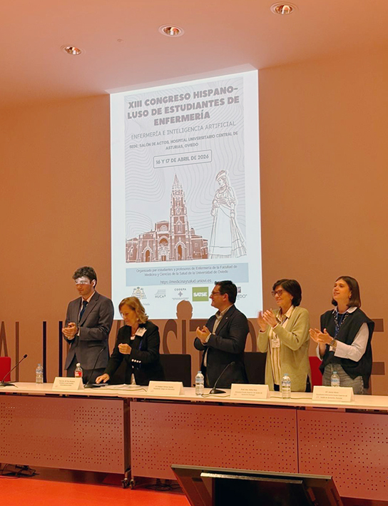Queremos felicitar de manera especial al Comité Organizador y a los estudiantes de la Universidad de Oviedo por la impecable organización de este evento. La calidad del programa científico, que aborda desde la innovación en cuidados hasta la investigación traslacional y la sostenibilidad en el ámbito sanitario, es un reflejo del alto nivel de compromiso y vocación de nuestros futuros profesionales.